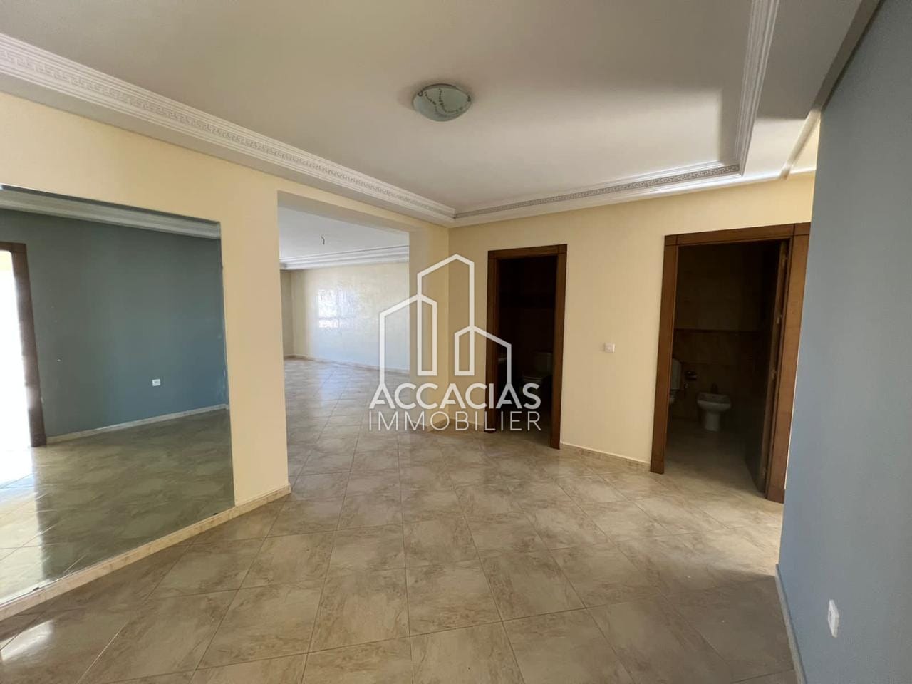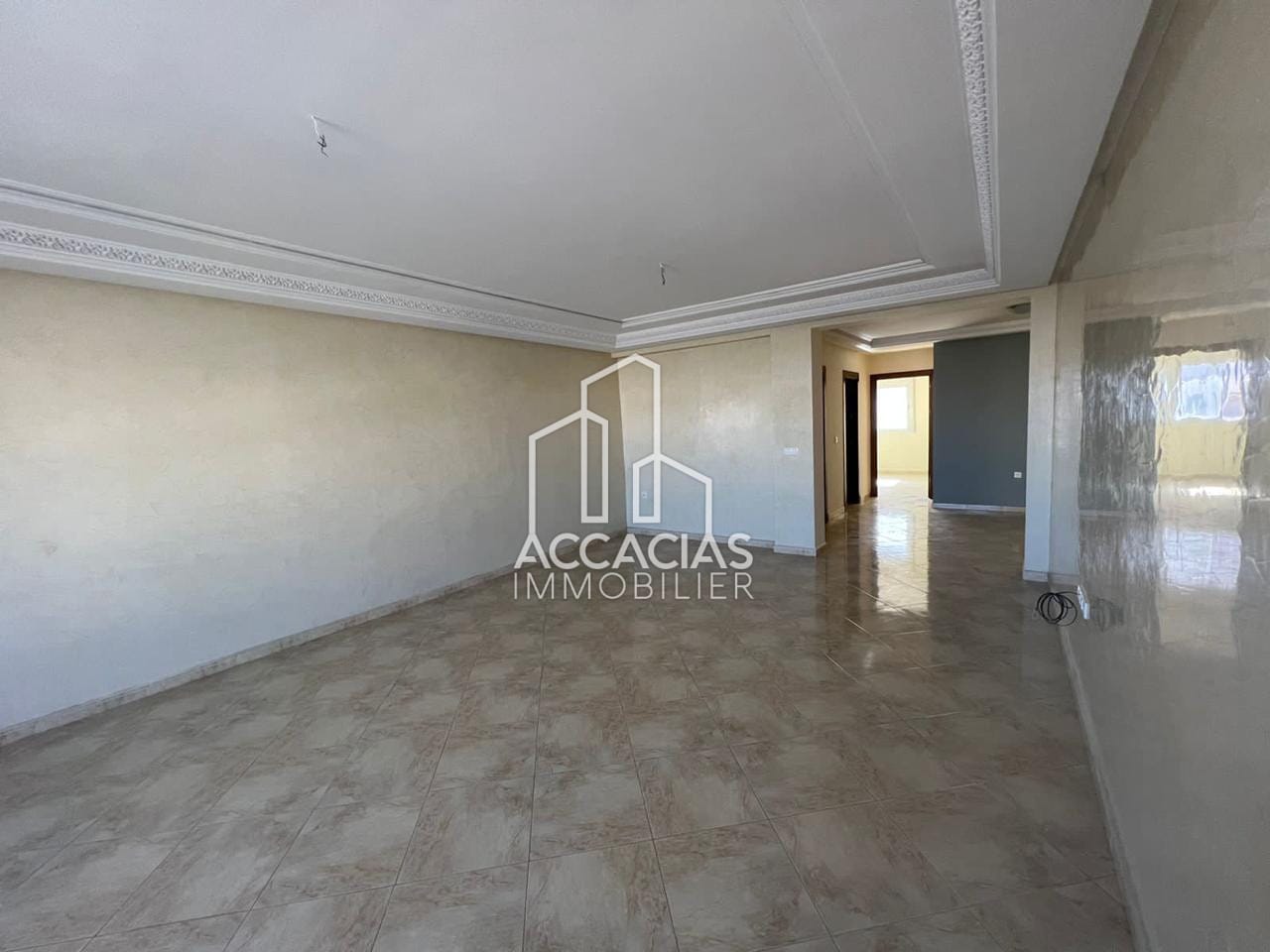 ACCACIAS IMMOBILIER met à votre disposition pour la location ce bel appartement vide d’une surface de 100m², situé à Moulay Ismail dans un immeuble bien entretenu.